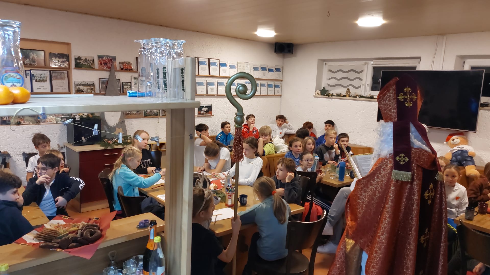 Ein besonderer Höhepunkt war der Besuch des Nikolaus, der den Kindern und auch den Trainern und ihren Helfern kleine Päckchen überreichte. Die festliche Stimmung im Vereinsheim wurde durch Weihnachtsmusik und eine herzliche Atmosphäre abgerundet.